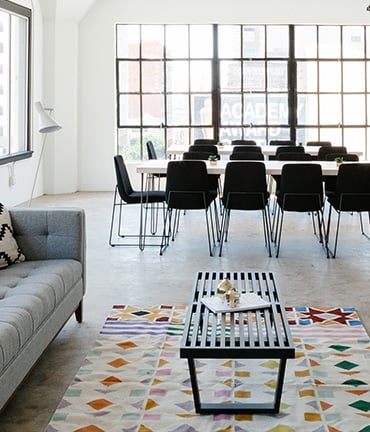 How to create a fun, energetic and welcoming office area in the midst of a bustling and busy city. The owners wanted a place where employees could both work and relax taking a break from the rigors of the fast-paced industry.The result is a space that is bright, fresh and inviting!